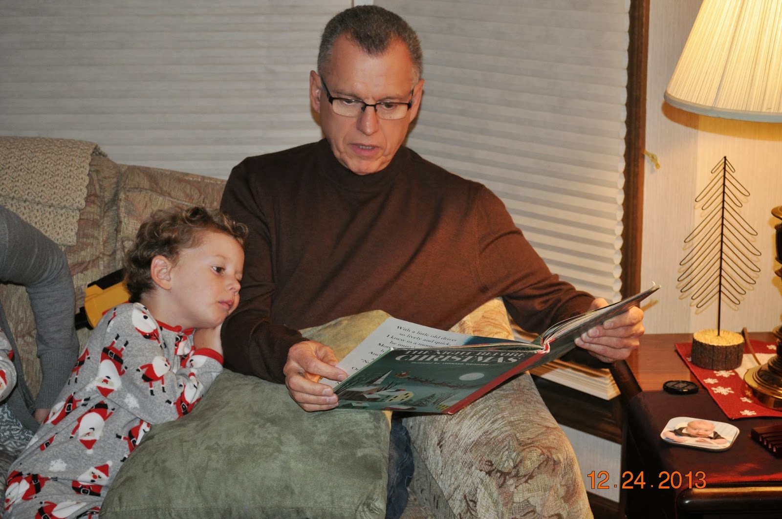 Christmas Eve was our usual, going to Church at 4:00 (Jim was very confused, he asked Grandma why he didn't get to go to Church in a Limo!) then came home for a delicious dinner. We had to go outside to sprinkle our reindeer food so they knew to stop at Grandma's house.